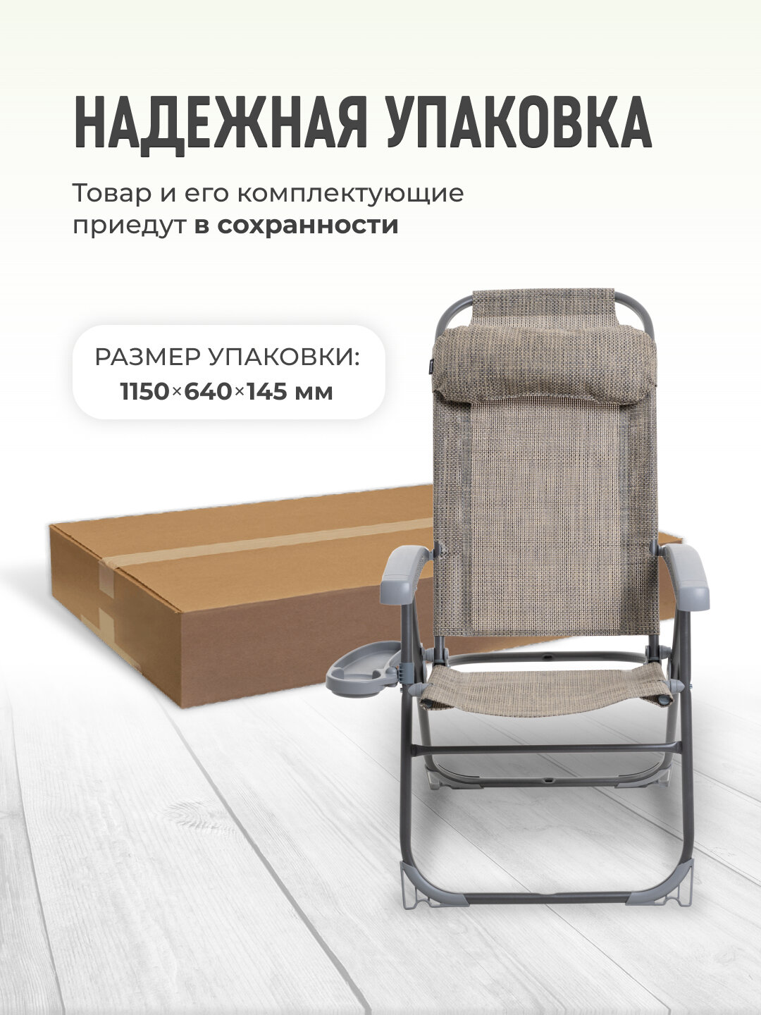 Складное садовое кресло шезлонг для дома и дачи, для рыбалки и комфортного отдыха на природе, бежевое