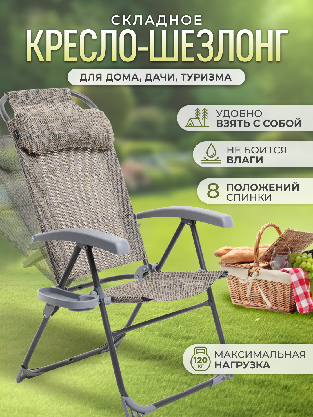 Складное садовое кресло шезлонг для дома и дачи, для рыбалки и комфортного отдыха на природе, светло-серое