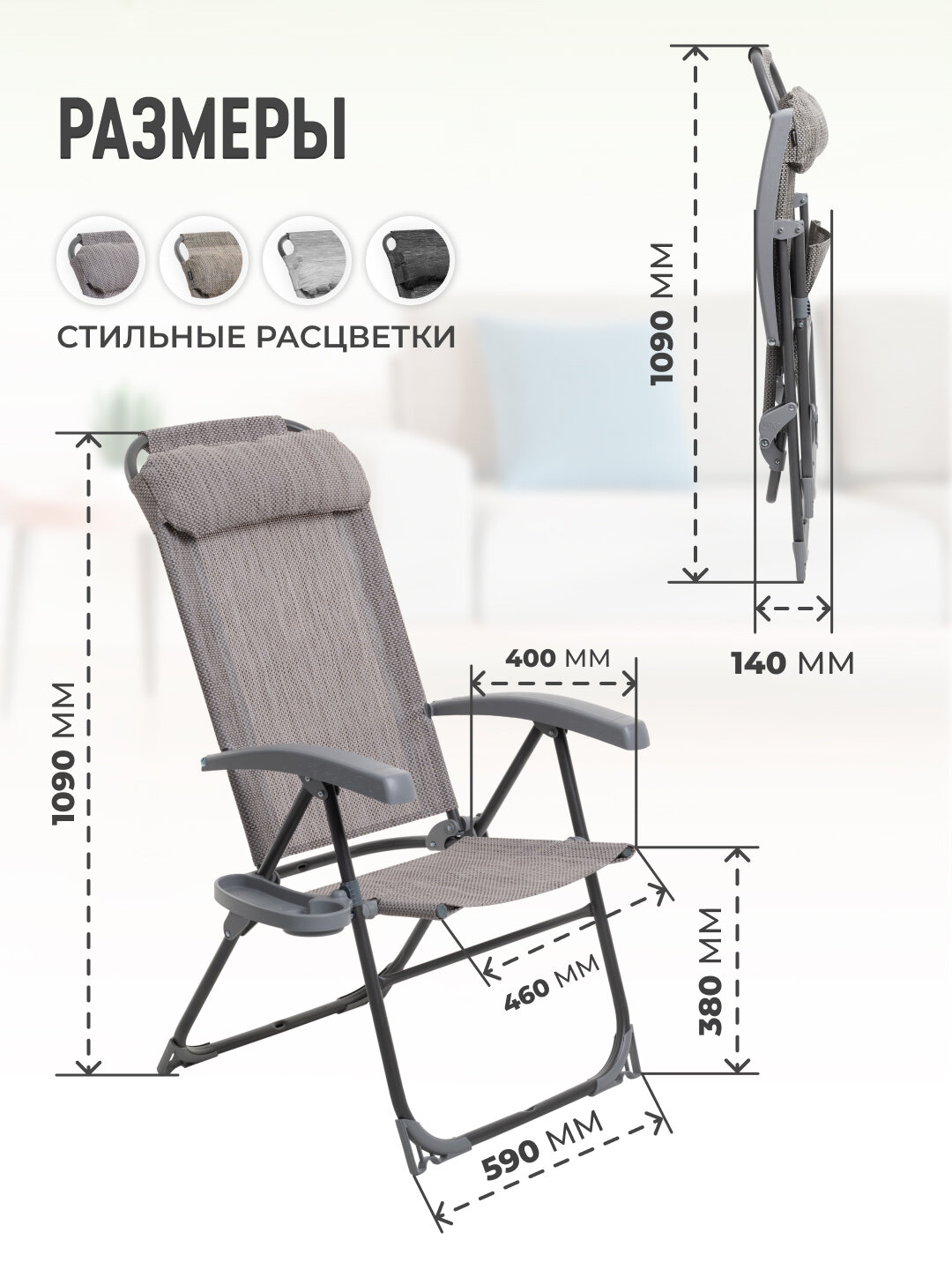 | Комплектация | кресло-шезлонг, подстаканник, подголовник |