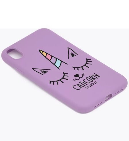 СохранитьМатовый чехол на iPhone XR / Айфон XR сиреневый с принтом "Caticorn" интересное: