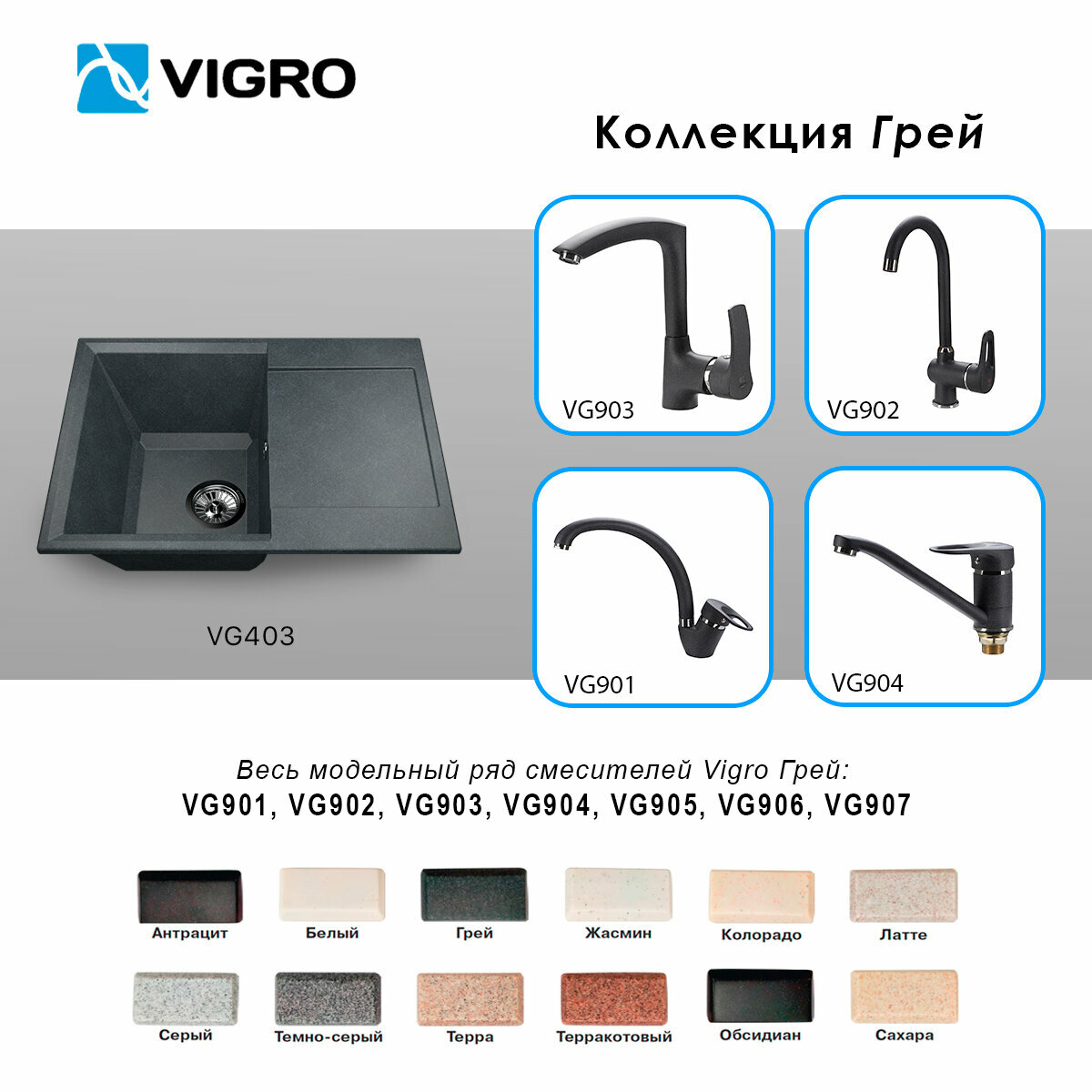 Мойка кухонная врезная VIGRO VG403 грей (673*495*220) интересное: