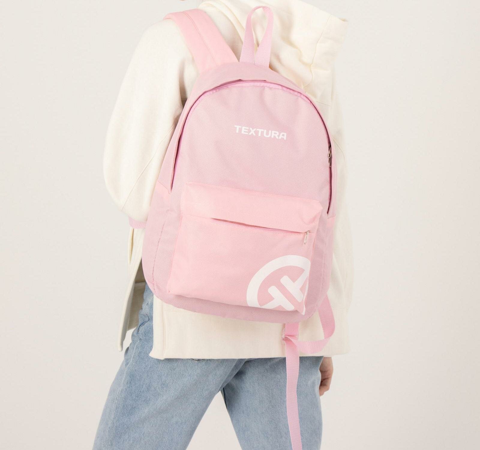 Рюкзак молодёжный из текстиля на молнии, 1 карман, TEXTURA, цвет розовый