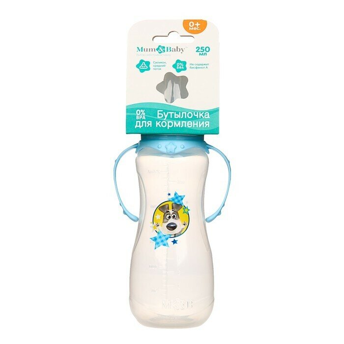 Mum&Baby Бутылочка для кормления "Собачка Джекки" детская приталенная, с ручками, 250 мл, от 0 мес., цвет голубой