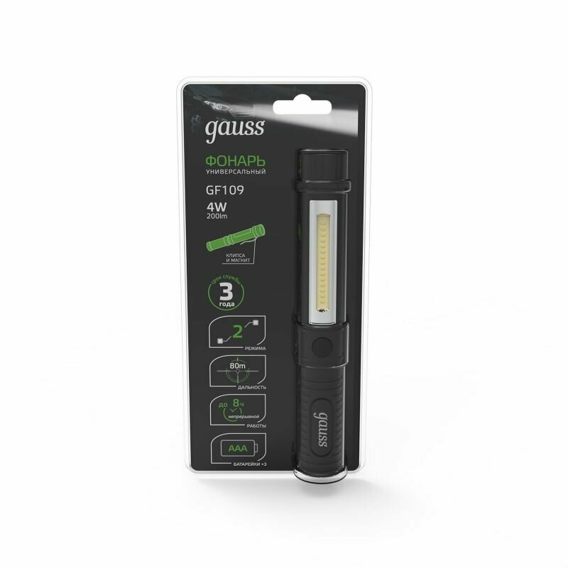 GAUSS GF109 фонарь ручной GAUSS интересное: