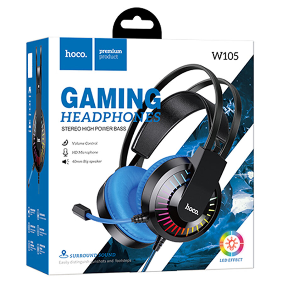 Наушники Hoco Hoco W105 полноразмерные игровые с МК с LED (Blue)
