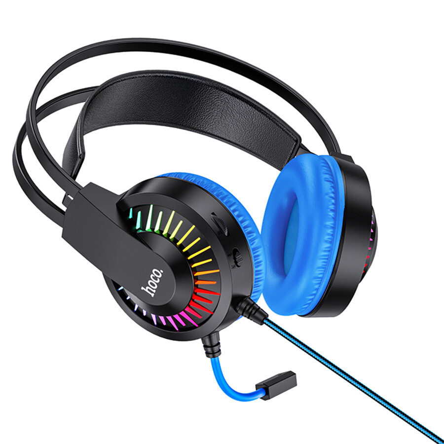 Игровые наушники с микрофоном HOCO Gaming W105 Joyful, Проводные USB+Jack 3.5mm, 2 м, RGB Light, Черный+Синий