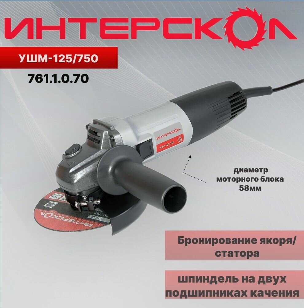 Купить Углошлифовальная машина Интерскол УШМ-125/750 750Вт 11000об/мин рез.шпин.:M14 d=125мм (761.1.0.70)