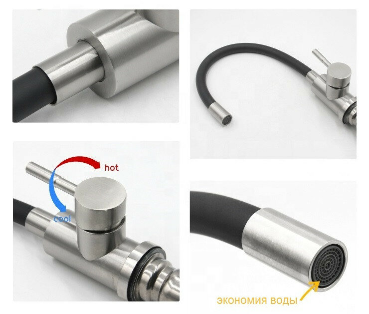 Кухонный смеситель из нержавеющей стали с гибким поворотным изливом