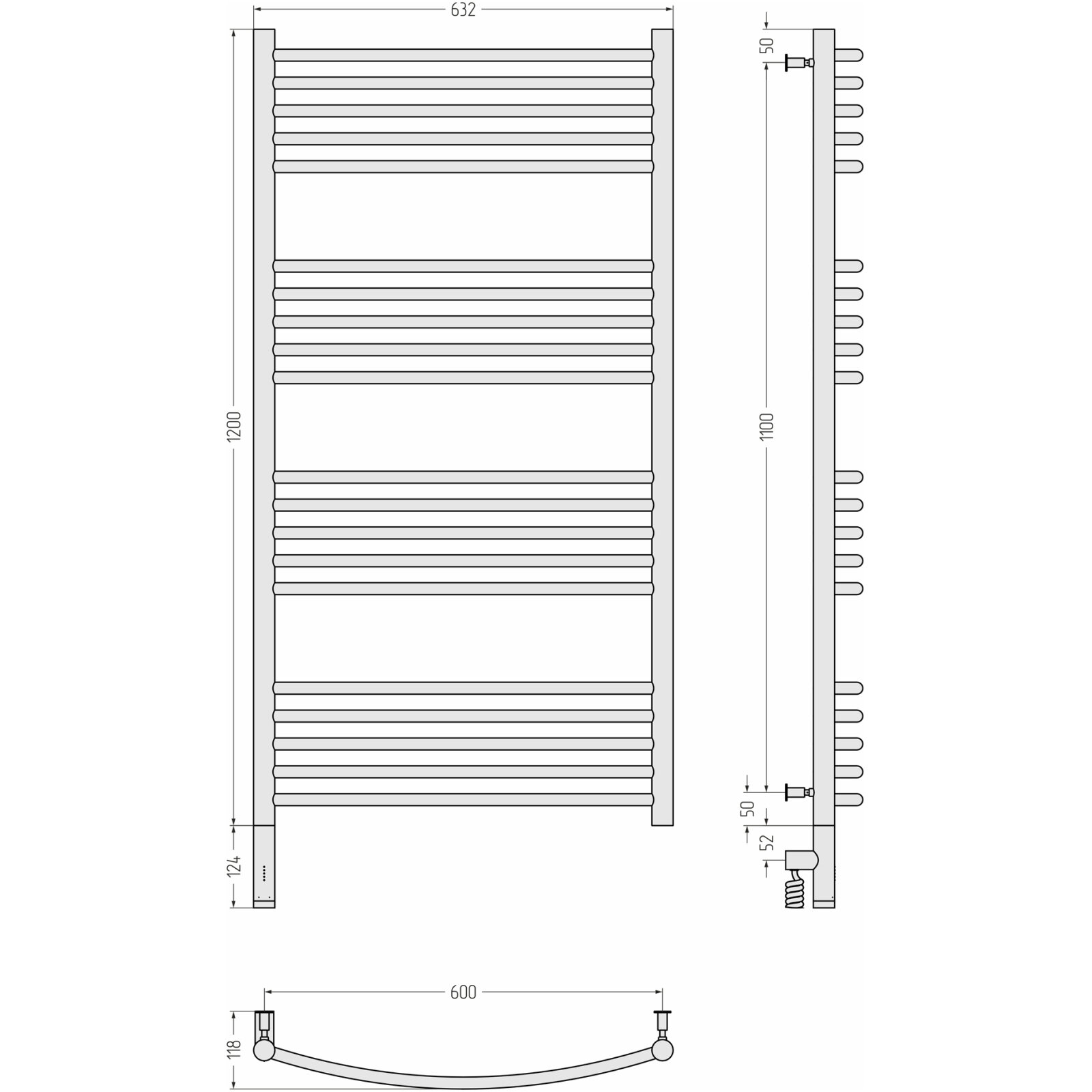 Полотенцесушитель электрический Сунержа Богема 3.0 выгнутая 1200х600 МЭМ левый Без покрытия 00-5802-1260
