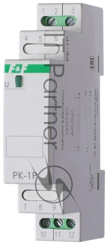 Реле промежуточное PK-1P/Un (монтаж на DIN-рейке 35мм 24В AC/DC 16А 1P IP20) F&F EA06.001.003