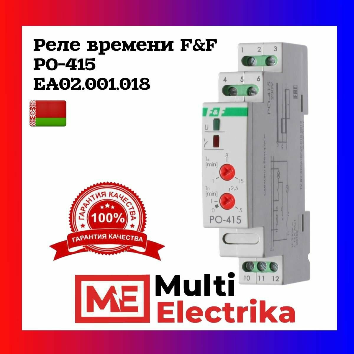 Реле времени PO-415 (задержка выкл./управ. контактом 230В 16А 1перекл. IP20 монтаж на DIN-рейке) F&F, евроавтоматика EA02.001.018 (1 шт.)