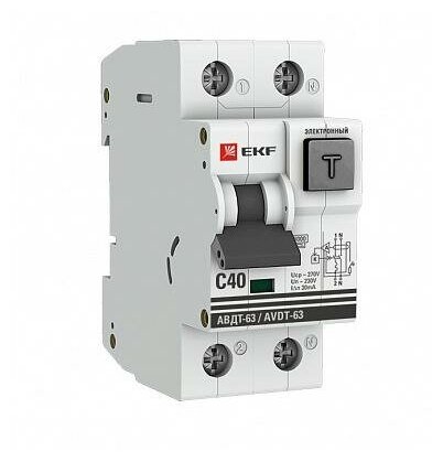 Выключатель автоматический дифференциальный АВДТ-63 1п+N 40А C 30мА тип A PROxima (электронный) | код. DA63-40-30e | EKF ( 1шт. )
