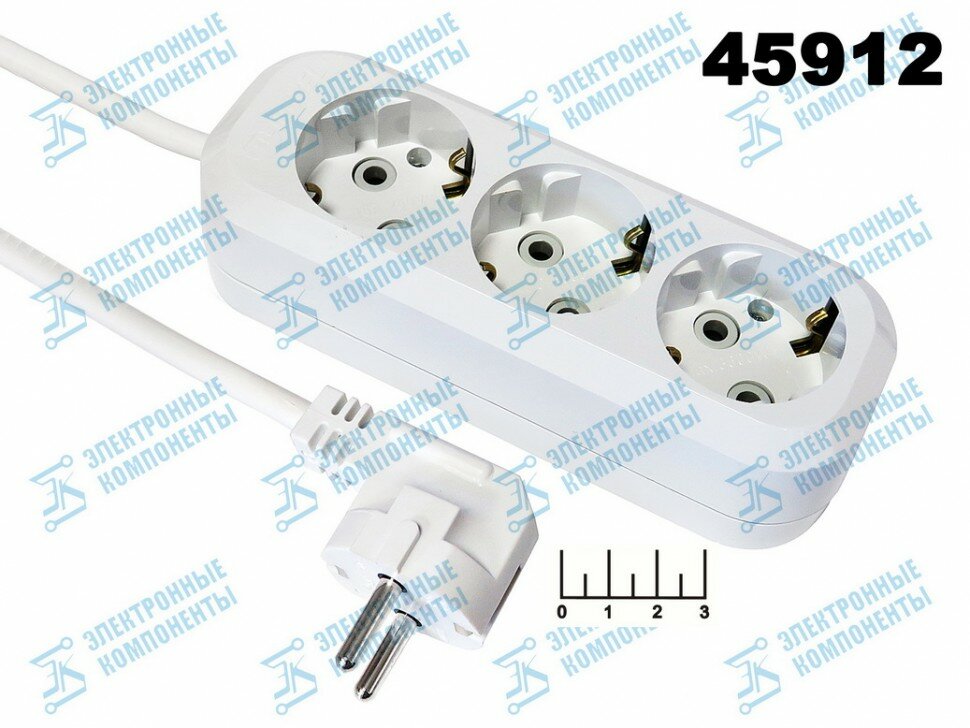 Удлинитель Makel 3 м 3 гнезда с заземлением белый 3х 1 мм электрический, MGP133