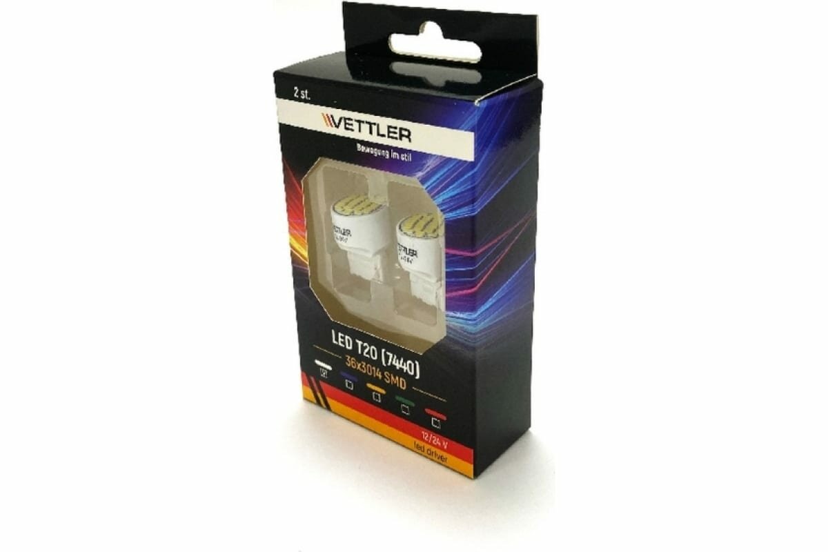Светодиодная лампа VETTLER 12/24 V T20 7440-36 3014 SMD, 2 шт. T201224301436White