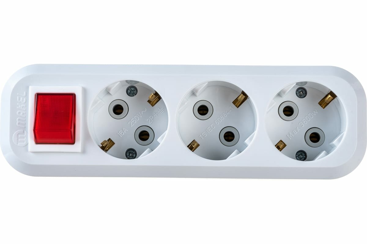 Купить Штепсельная электрическая колодка для удлинителя с заземлением и выключателем MAKEL MGP211 на 3 гнезда 2,2 кВт 10А белая