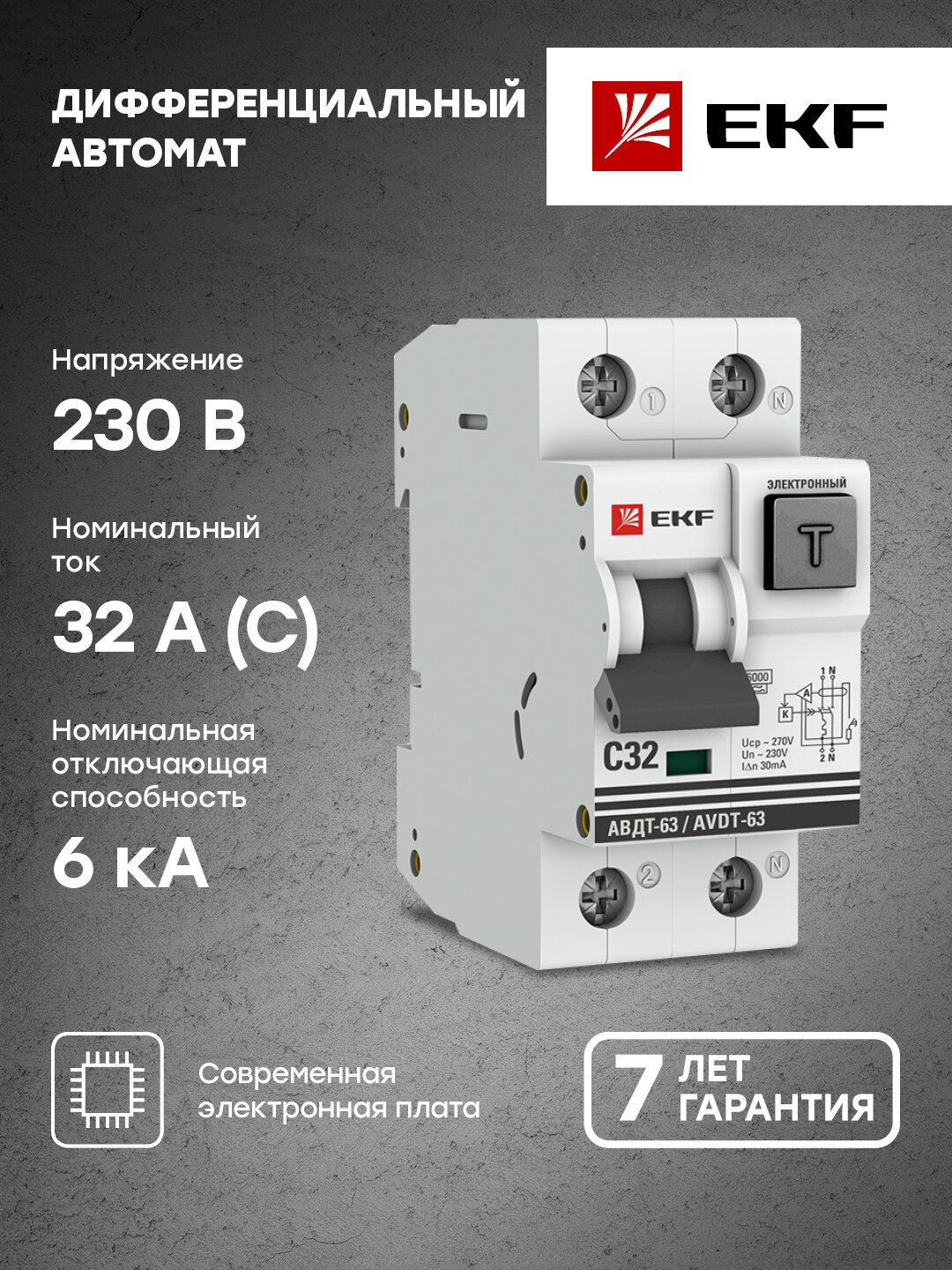 Дифференциальный автомат EKF АД-32 2П C 4.5 кА AC электронный