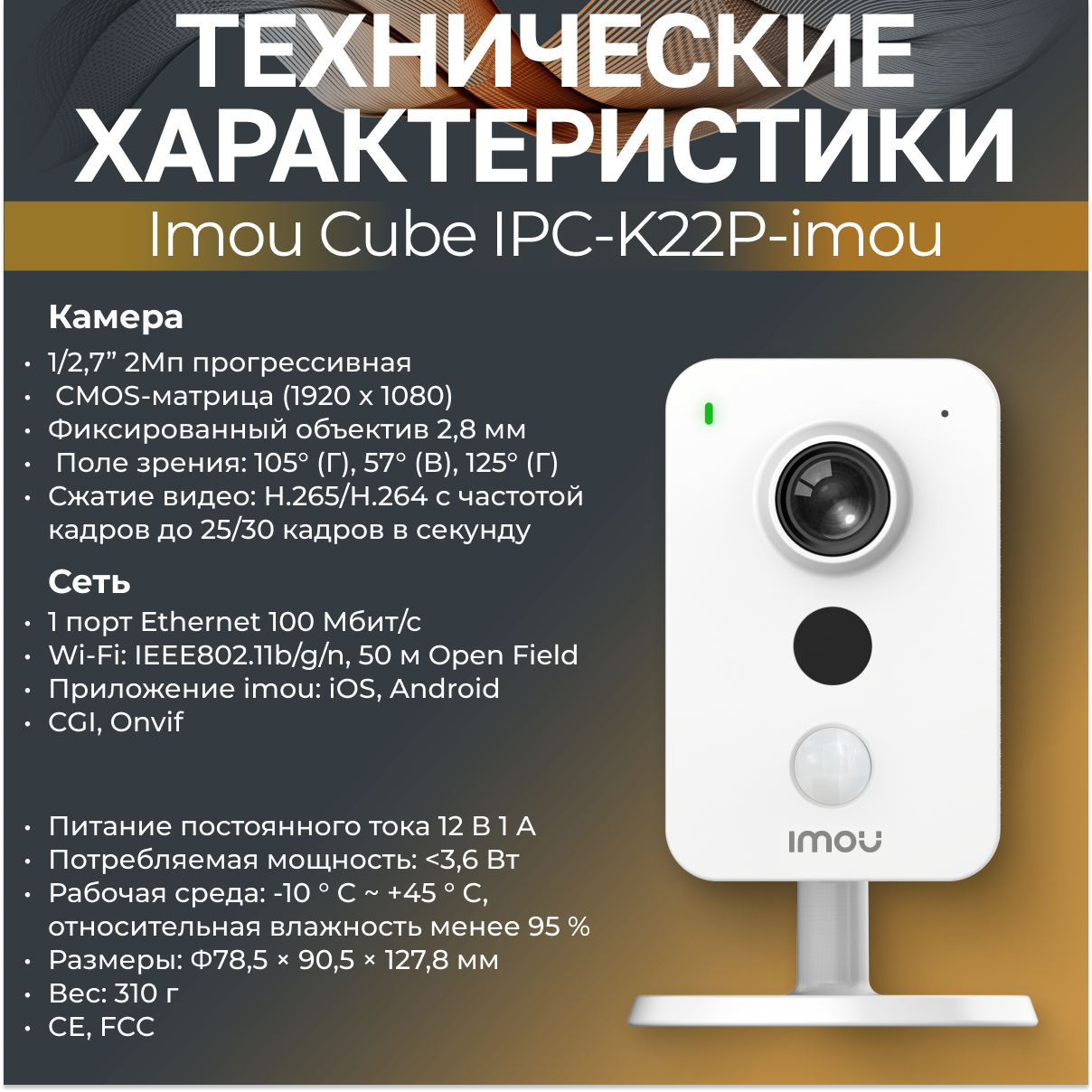 СохранитьКамера видеонаблюдения IP IMOU Cube 2MP, 1080p, 2.8 мм, белый [ipc-k22p-imou] интересное: