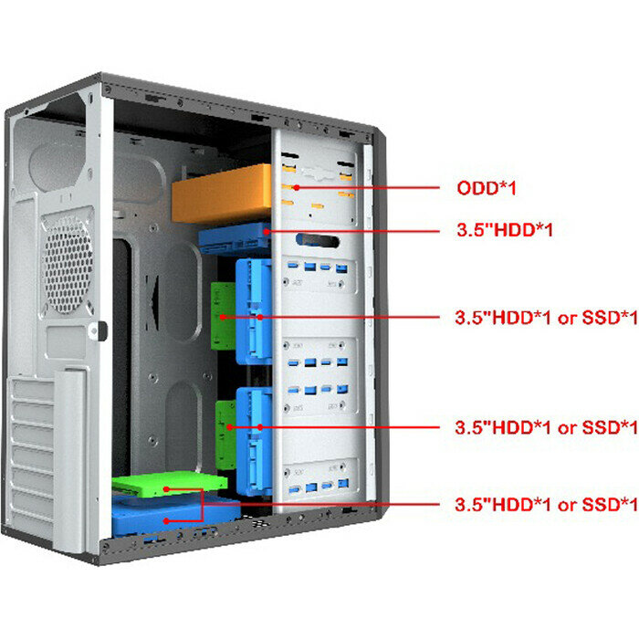 Число внутренних отсеков 3,5" - 4 Отсеки 2,5" - 3 Смотрим по факту на корпус, и как сюда смонтировать 4 полноценных диска не понятно |