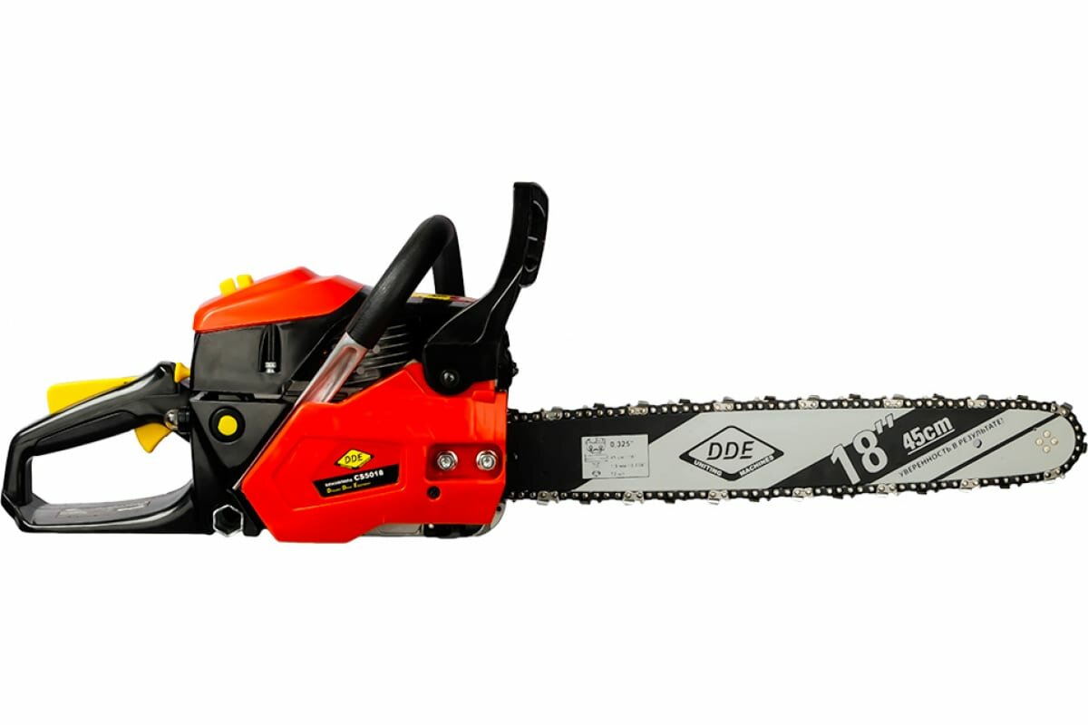 Пила цепная бензиновая DDE CS5018 (50 см3 2,1 кВт/2,73 л.с. 45 см 325"/72/1,5) интересное: