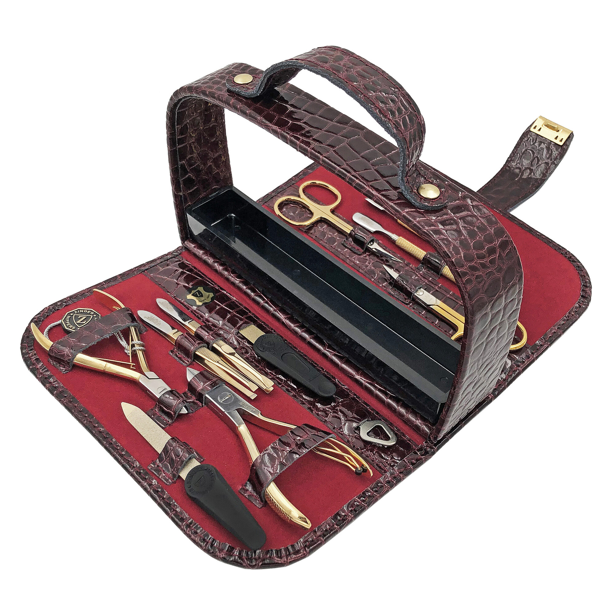Маникюрный набор Zinger MS-1101-BG, позолоченный/темно-красный крокодил, 12 предметов