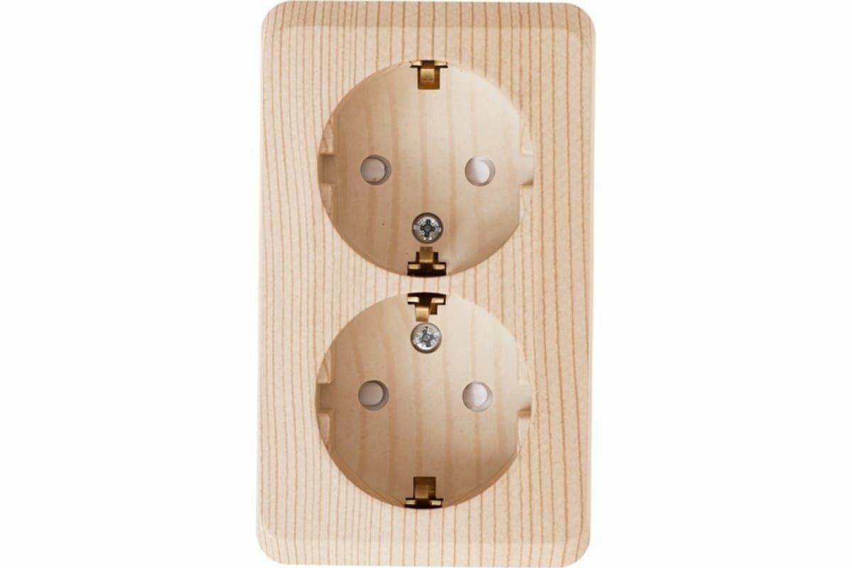 Розетка двойная с заземлением, со шторками, сосна, О/У PA16-008D 3 шт