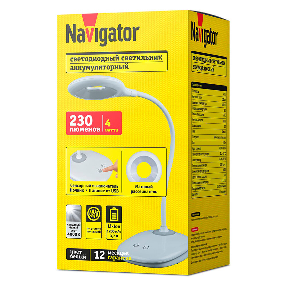 Светильник настольный светодиодный Navigator NDF-D031, 4 Вт, на освновании, белый