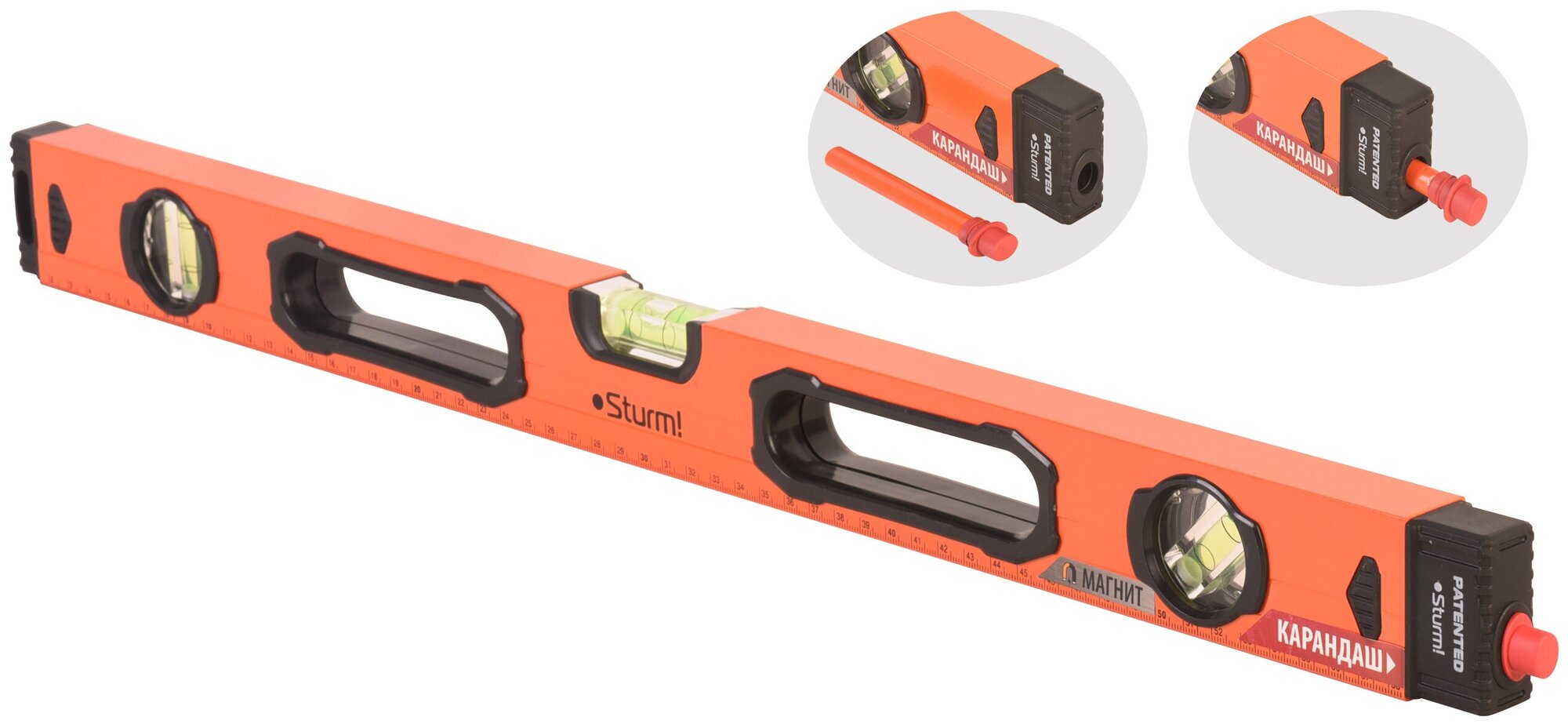 STURM! 2015-09-600 Уровень 600мм, усиленный профиль,магнит,3 глазка,с карандашом, кулибин,pat,