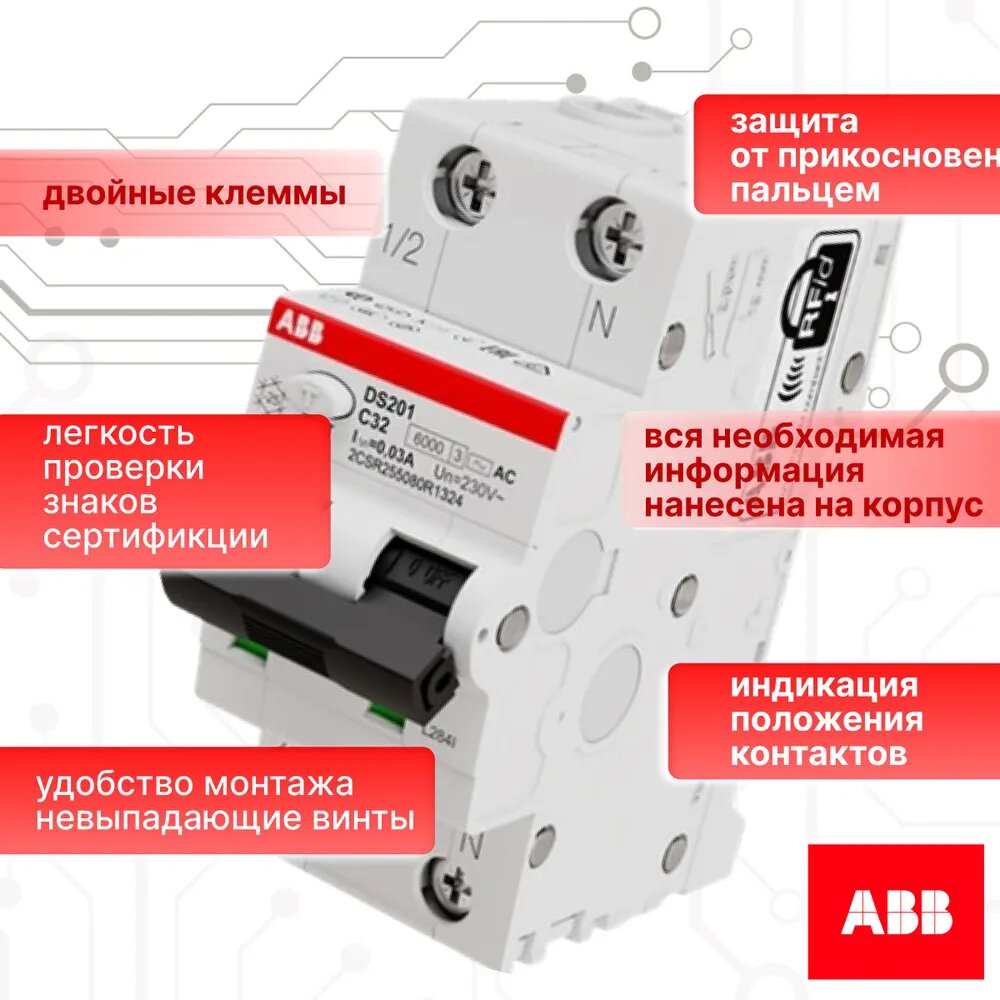 Ниже Вы можете прочитать отзывы на Дифавтомат ABB DS201 C32 AC30 2-ПОЛЮСНЫЙ характеристика C 32A 30MA ТИП АС, ознакомится с подробными характеристиками, посмотреть интересные обзоры и фотографии на Дифавтомат ABB DS201 C32 AC30 2-ПОЛЮСНЫЙ характеристика C 32A 30MA ТИП АС.