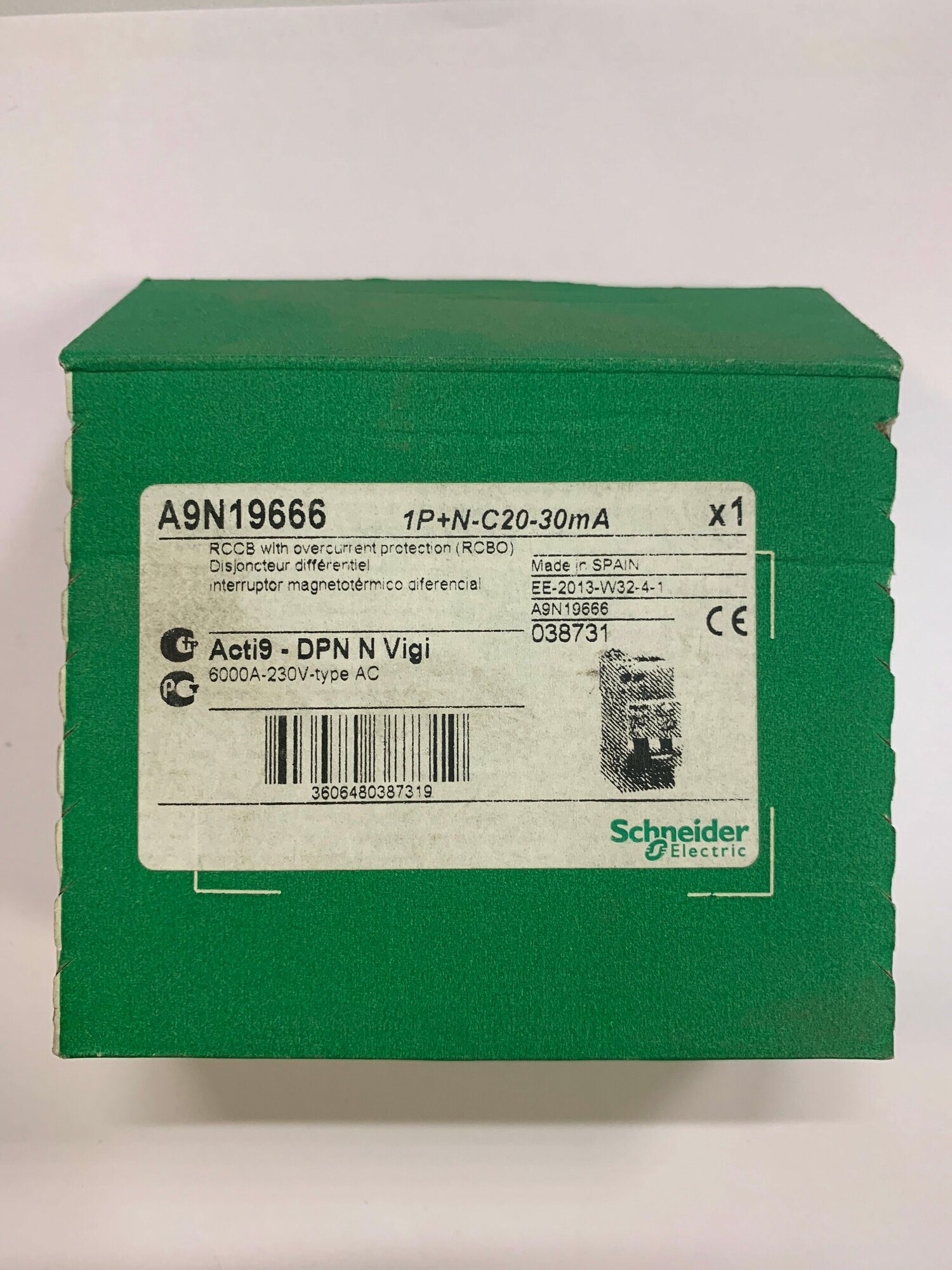 DPN N Vigi дифференциальный автоматический выключатель 1P+N, 32A, 6kA, 30mA, тип AС (хар-ка C) Schneider Electric, A9N19668