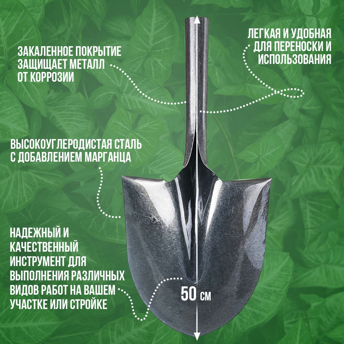 | Плюсы: | Крепкая, наточена остро, очень удобно копать |