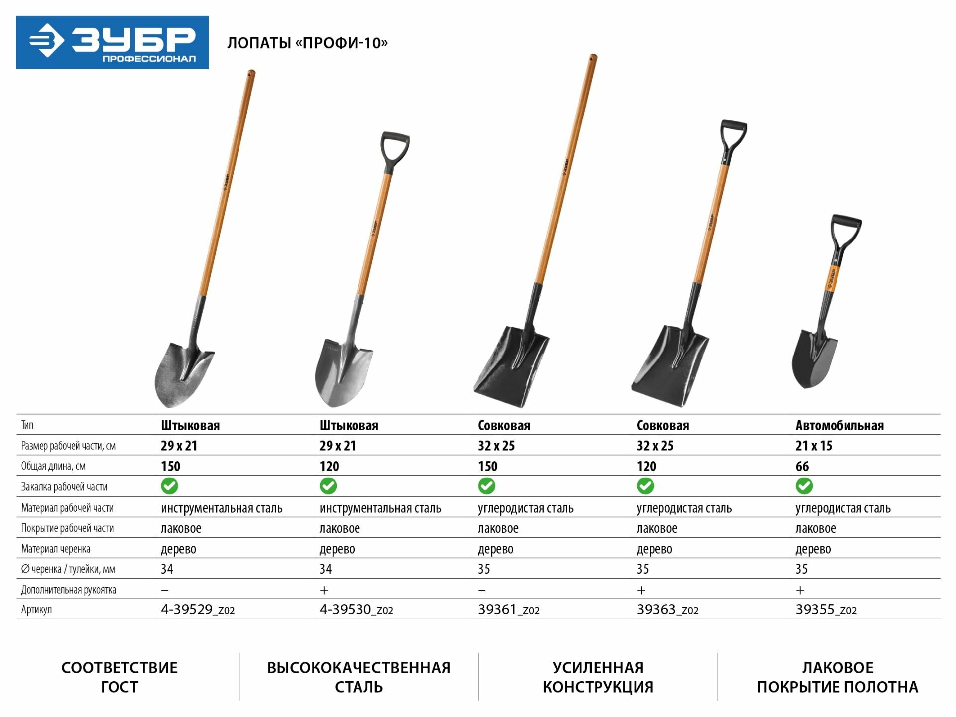 Купить Штыковая лопата ЗУБР Профессионал Профи-10 с деревянным черенком, с рукояткой (4-39530_z02)