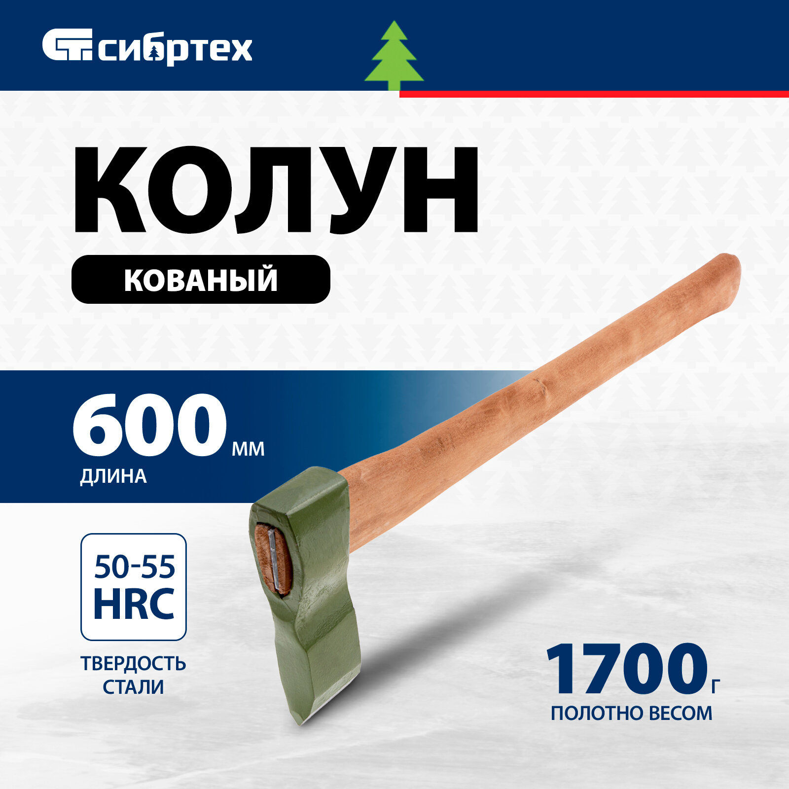 Кованый колун СИБРТЕХ 1700/2050 г, деревянное топорище, 600 мм 21842