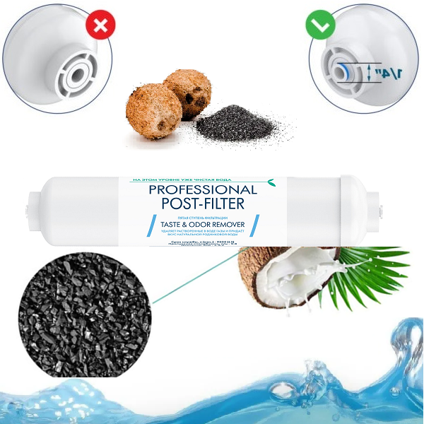 Постфильтр с кокосовым углем T-33-1 с фитингами для осмоса интересное: