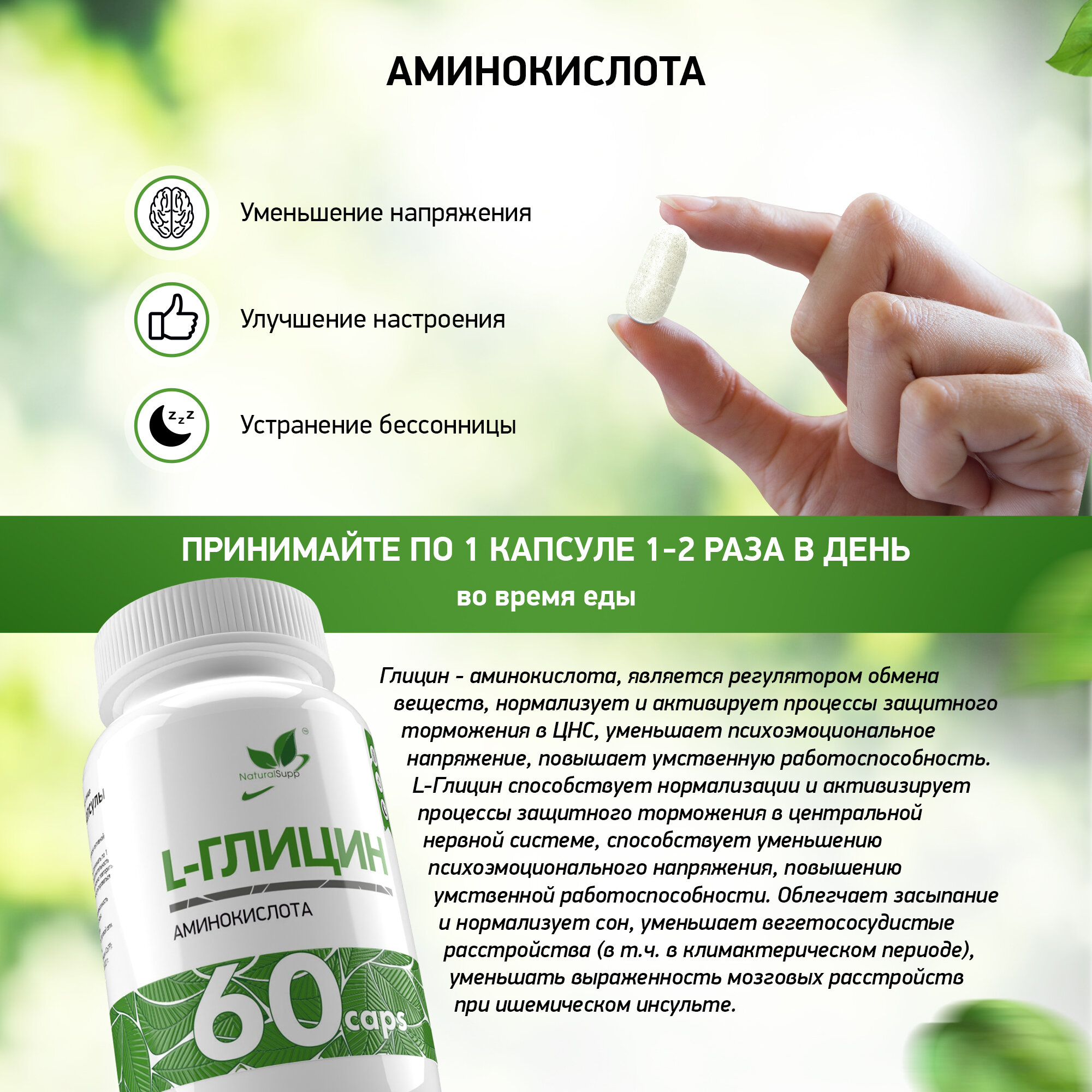 L-Глицин 650 мг / БАД для мозга, нервной системы и хорошего сна/ 60 капс NaturalSupp