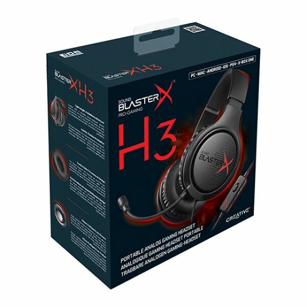 Гарнитура игровая CREATIVE Sound BlasterX H3, для компьютера, мониторные, черный [70gh034000000]