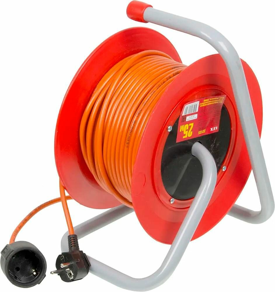Удлинитель силовой LUX К1-Е-25, розеток 1шт, 3x0.75 кв.мм, 10A, 25м, ПВС, катушка [22125]