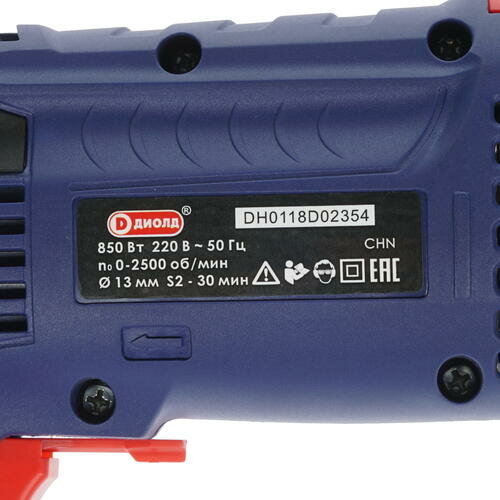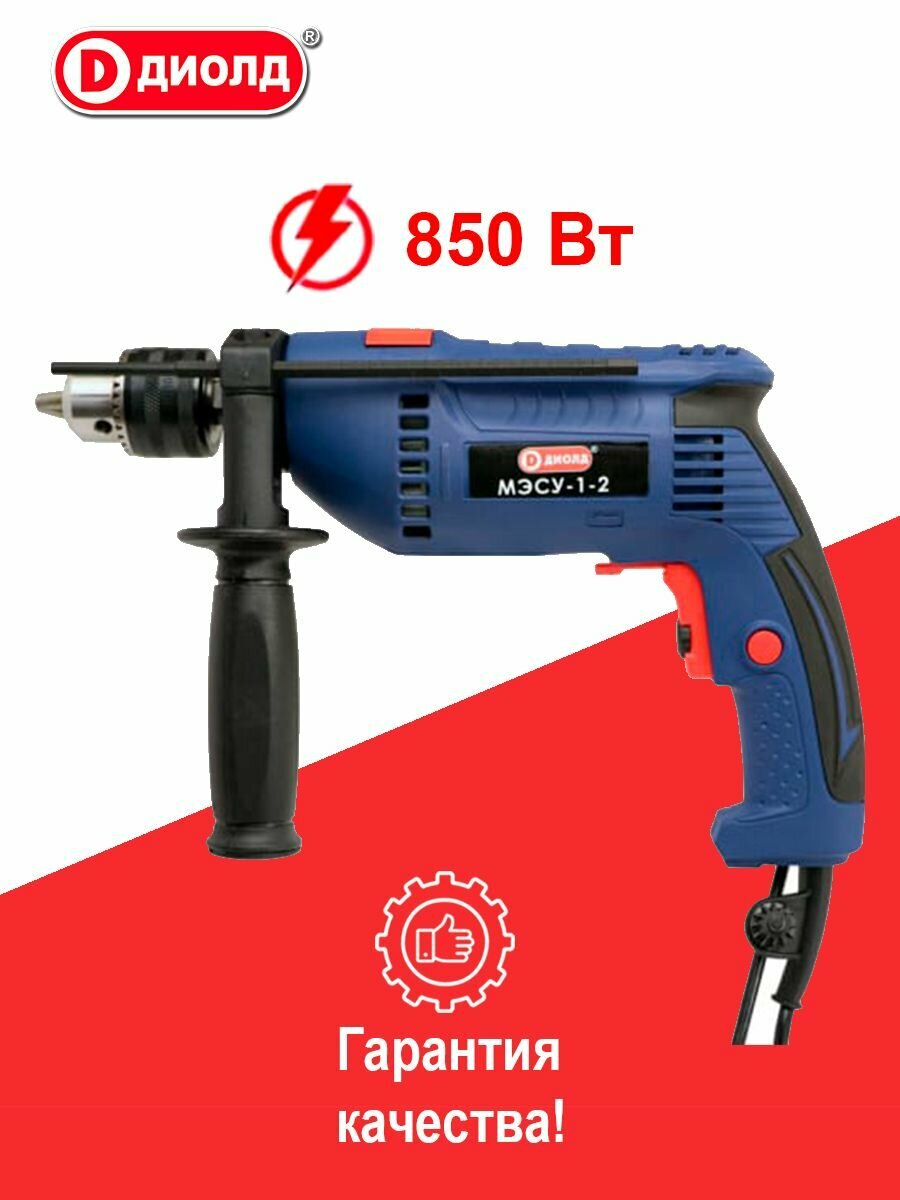 Дрель сетевая ударная диолд МЭСУ-1-2 / сдвоенный подшипник, патрон 1,5-13 мм, реверс, 850 Вт, 2500 об/мин