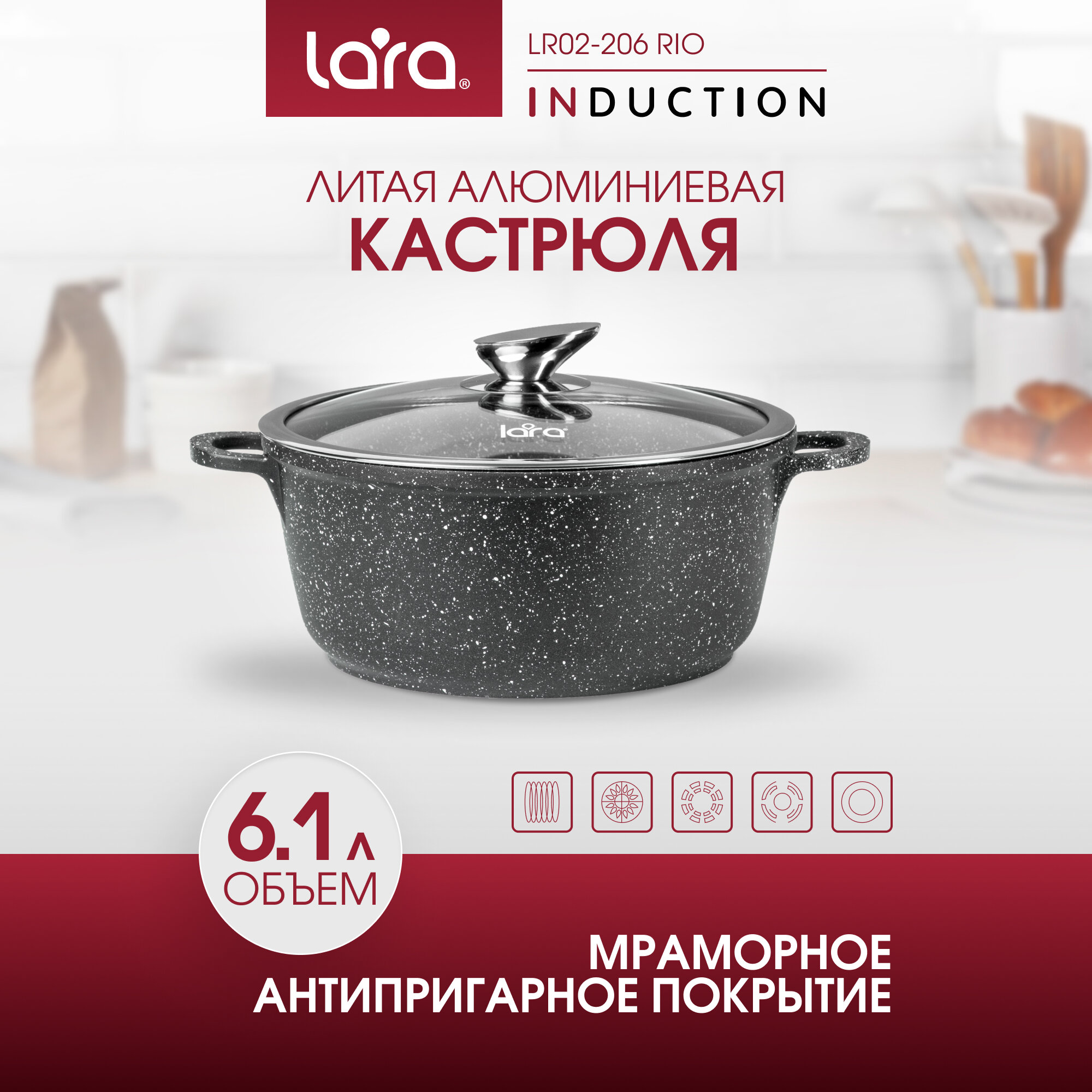Кастрюля LARA LR02-206 серия Rio 28см, 6.1л, мрамор, капсулированное индукционное дно, крышка