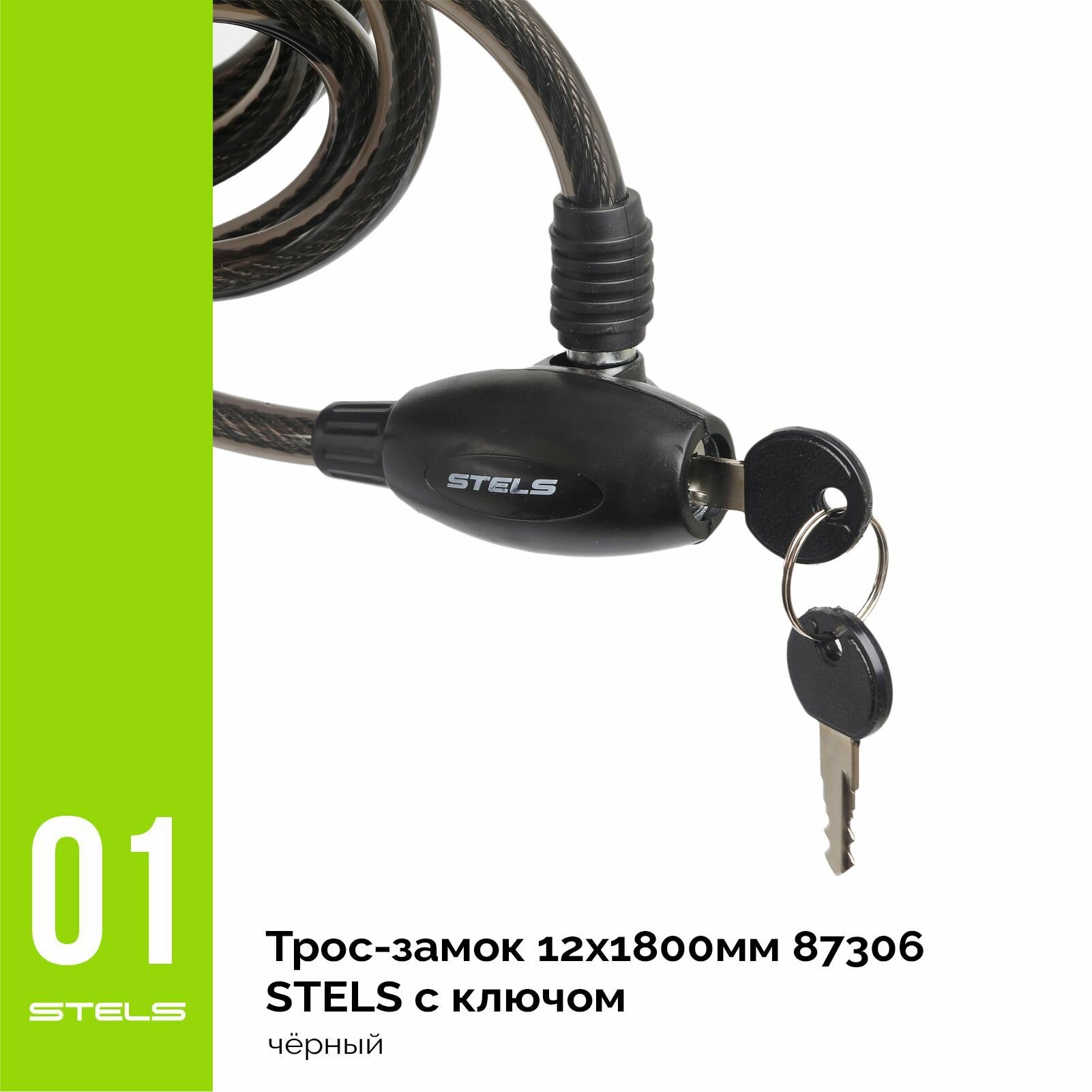 Купить Замок для велосипеда 12х1800мм STELS 87306 с ключом, чёрный NEW (item:010)
