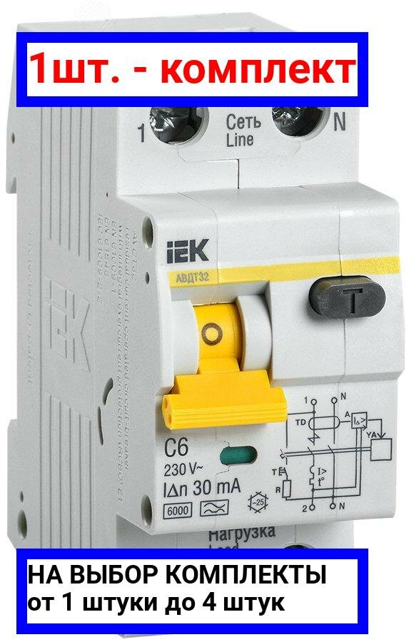 Выключатель автоматический дифференциальный АВДТ 32 1п+N 6А C 30мА тип A MAD22-5-006-C-30 IEK ( 1шт. )