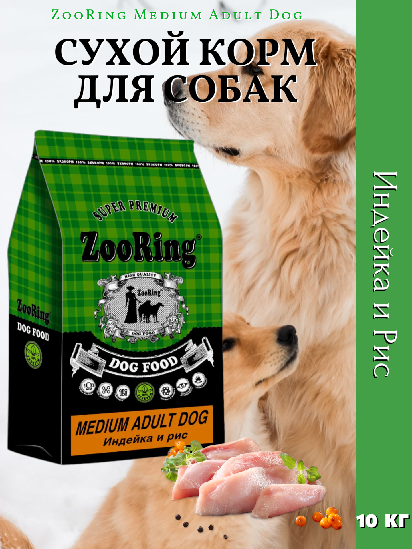 Купить ZooRing Medium Adult Dog Сухой корм для собак, Индейка / Рис 10кг