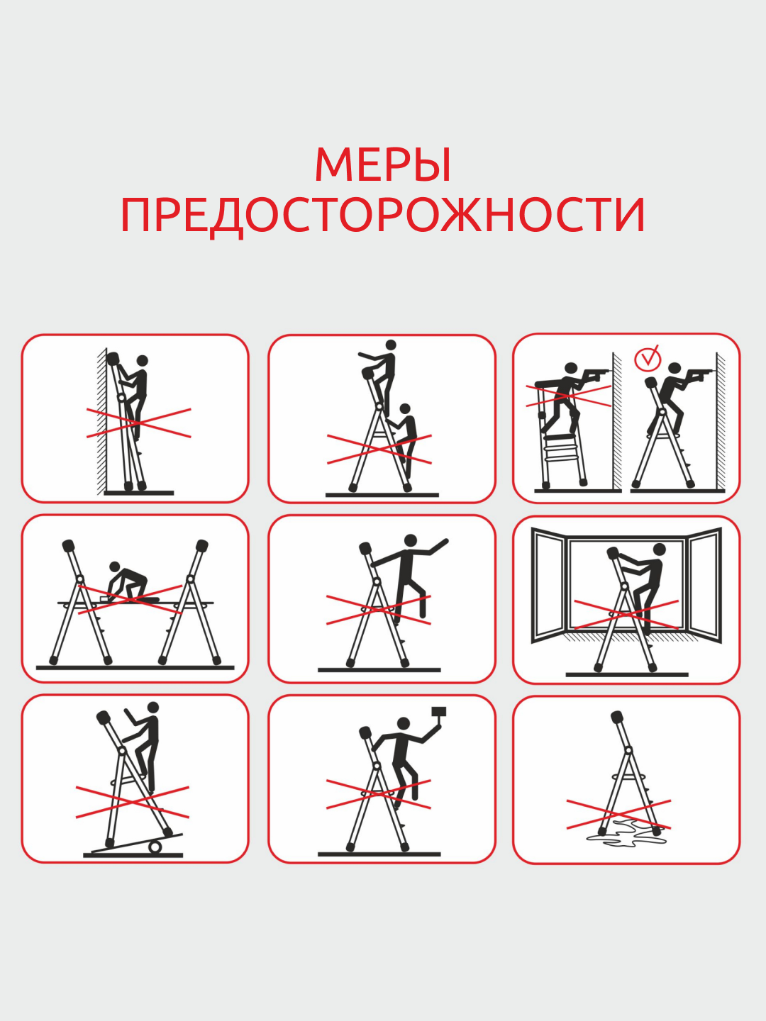Лестница-стремянка стальная с 3 ступенями, высота площадки 68 см, нагрузка до 150 кг, 122103