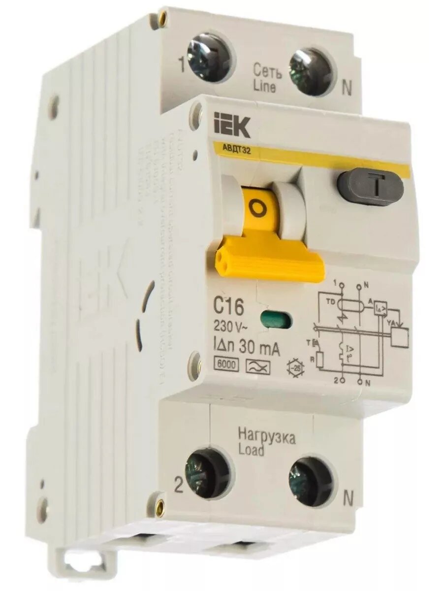 Выключатель автоматический дифференциальный АВДТ 32 1п+N 16А C 30мА тип A | код. MAD22-5-016-C-30 | IEK ( 1шт. ) интересное: