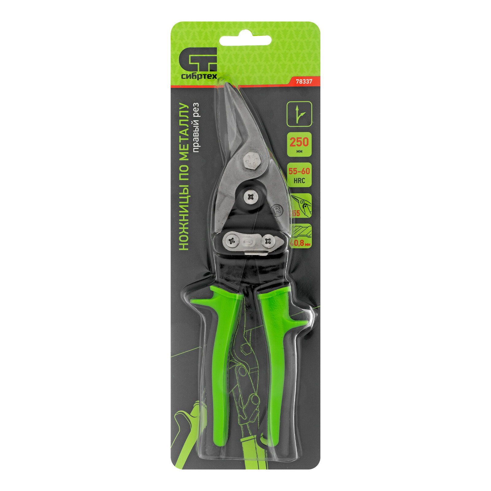 Ножницы по металлу СИБРТЕХ, 250 мм, правый рез, сталь С55,двухкомпонентные рукоятки 78337