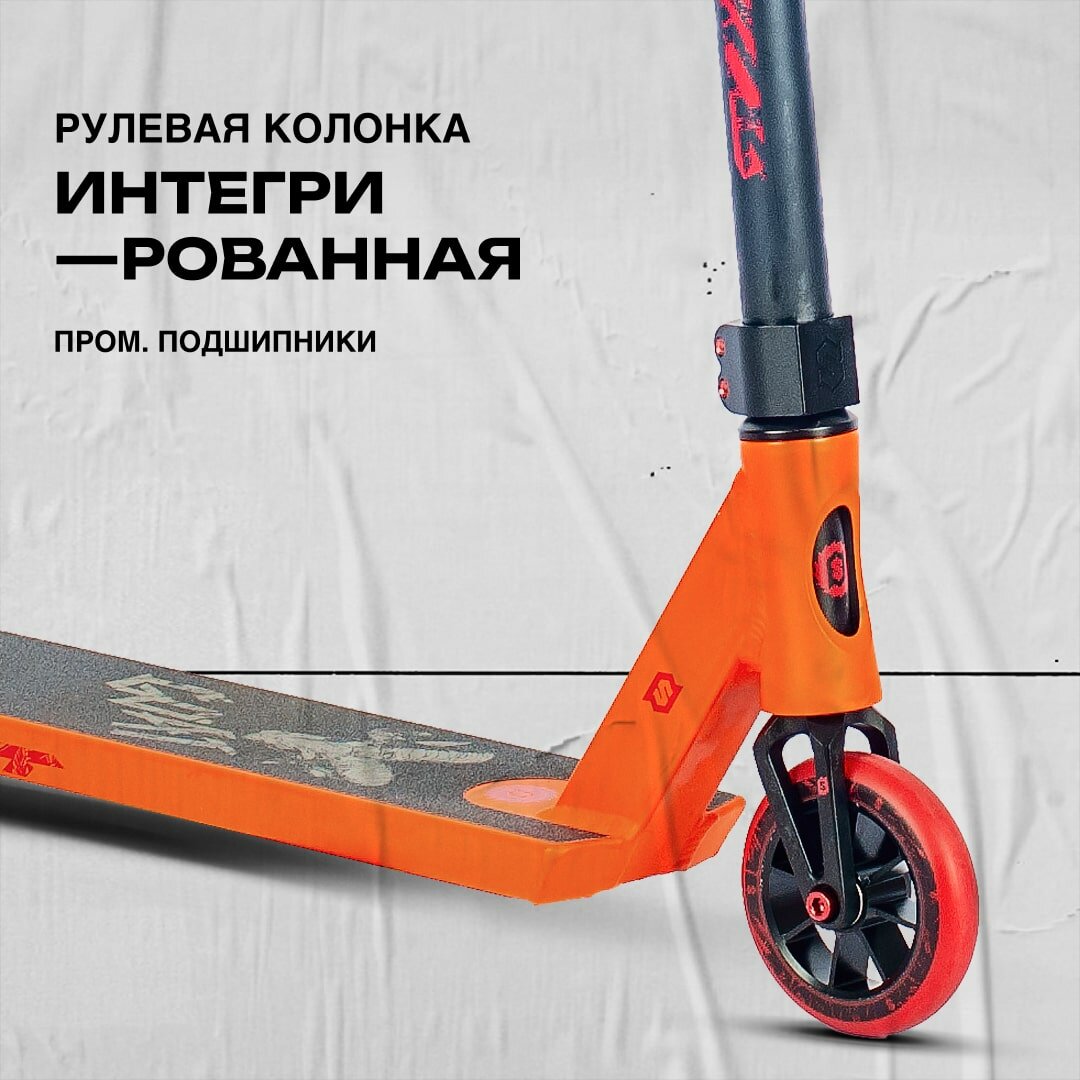 Купить Самокат SKIP Goat (2023) трюковой для взрослых, для детей, алюминиевая дека, стальной руль, компрессия HIC, красно-оранжевый цвет, рост 155-165