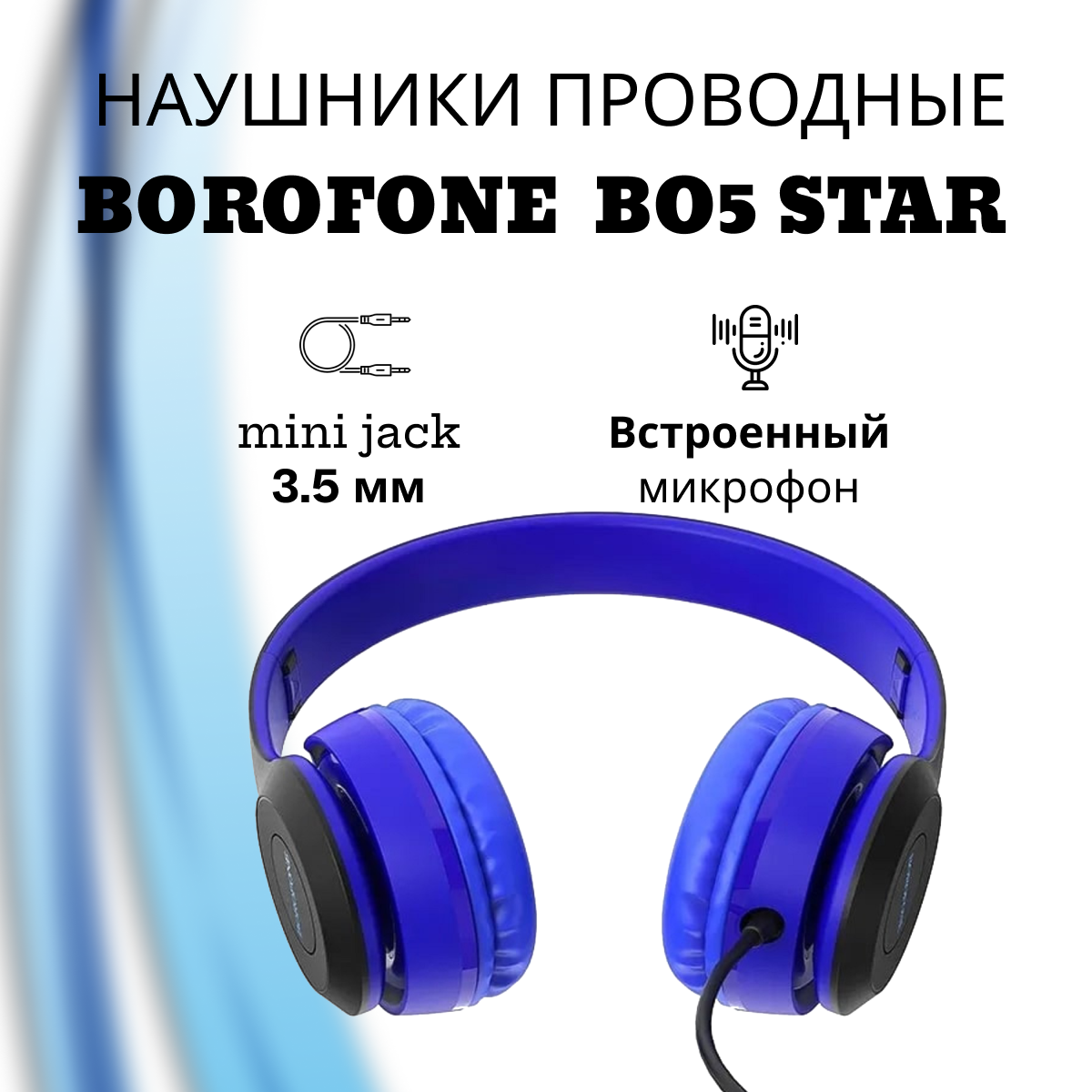 Купить Borofone Наушники Borofone BO5 Star sound, накладные, микрофон, Jack 3.5 мм, кабель 1.2 м, синие