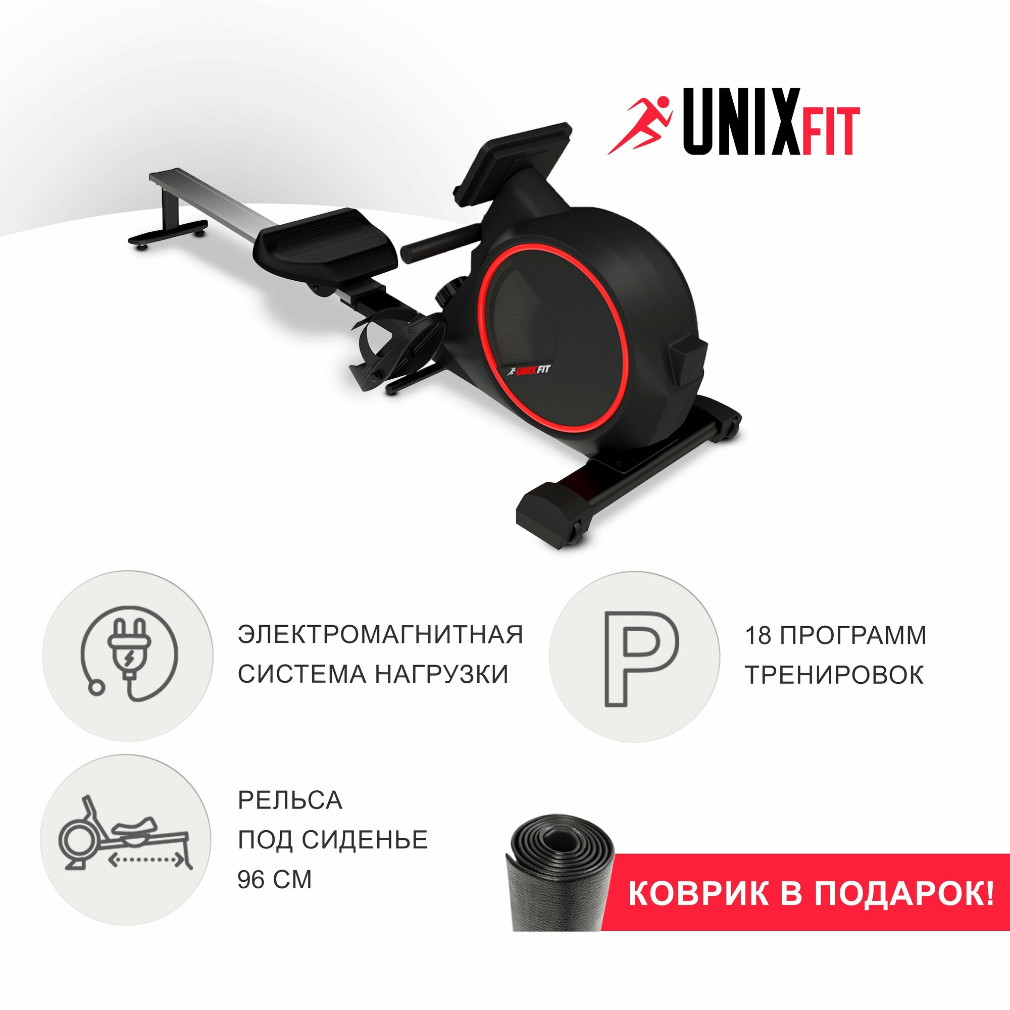 Гребной тренажер UNIX Fit Techno Rower 410E электромагнитный кардио тренажер спортивный для дома, для спины, ног и рук, до 130 кг UNIXFIT интересное: