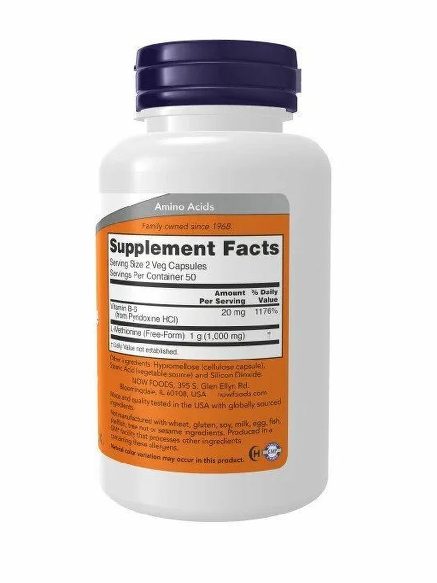 NOW Foods, L-Methionine, л-метионин, 500 mg, 100 капсул
