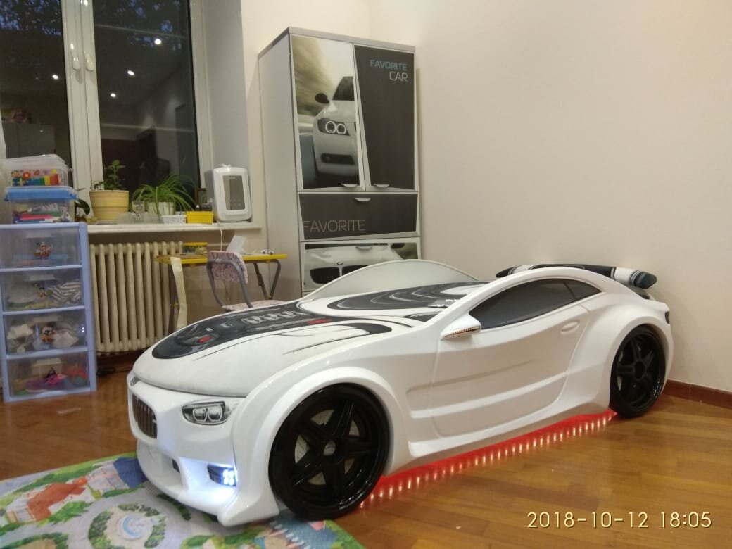 СохранитьFutuka Kids кровать-машина Neo БМВ белый цвет белый c подсветкой фар и дна, спойлером, матрас в дизайне "sport" интересное: