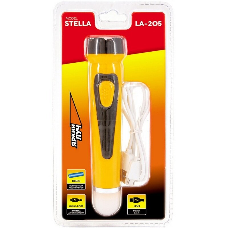 Ручной фонарь Яркий Луч LA-205 Stella, аккумуляторный, желтый